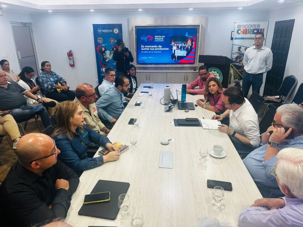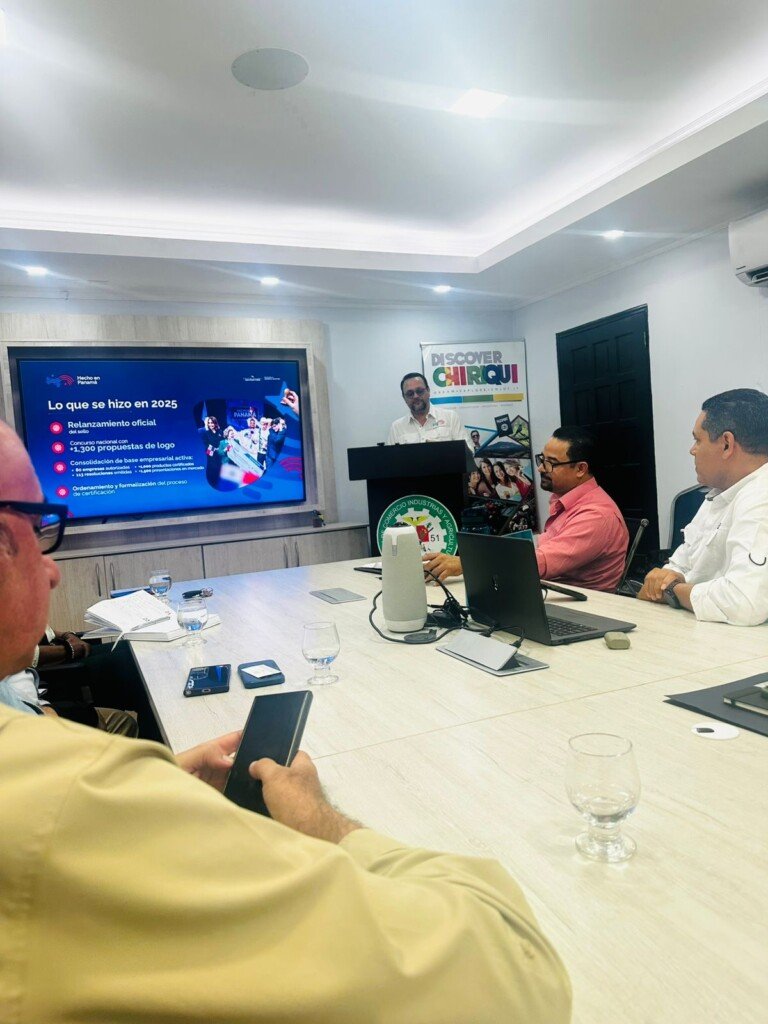 Hoy participamos en un encuentro organizado por la Cámara de Comercio, Industrias, Agricultura y Turismo de Chiriquí (CAMCHI), donde el ministro de Comercio e Industrias, Julio Moltó, presentó los alcances del sello “Hecho en Panamá”, una iniciativa que busca destacar y fortalecer los productos elaborados en nuestro país. El espacio también permitió un valioso intercambio de ideas entre autoridades, empresarios y organizaciones, promoviendo el diálogo para impulsar la competitividad, la producción nacional y nuevas oportunidades para el sector productivo.